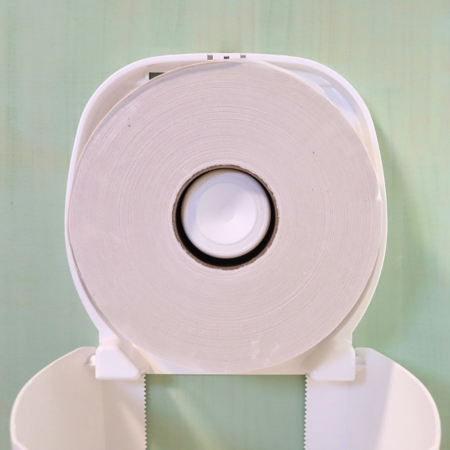 ディスペンサー1台と専用トイレットペーパー2種類(シングル500m、ダブル300m)各1ロールがセットになっています。
