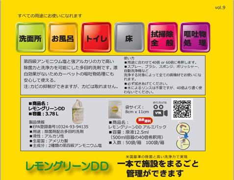 →何種類もあった洗剤をレモングリーンDD1本で統一出来ます。